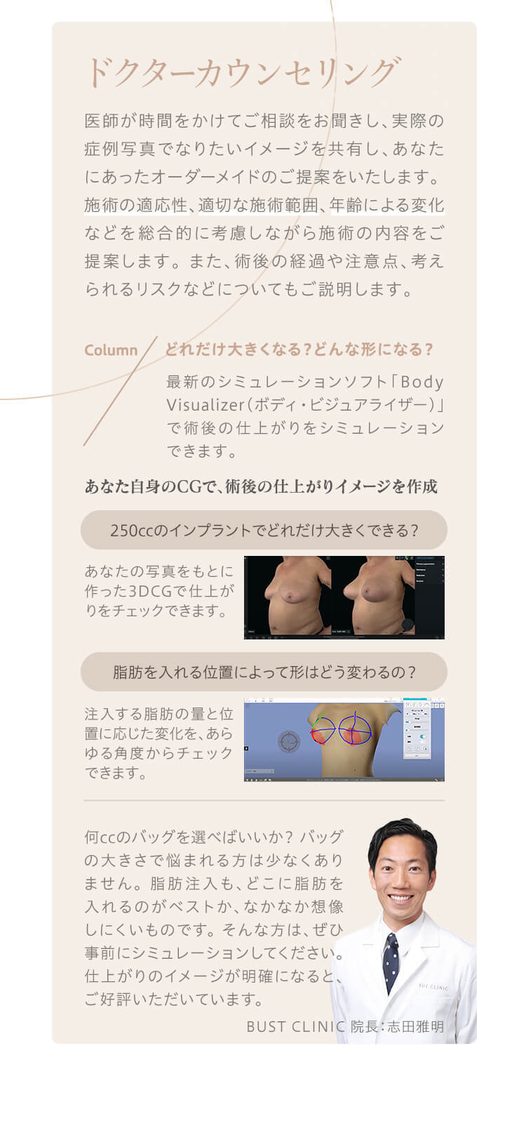 バストの内部をチェックする超音波検査です。術前は脂肪の注入量や挿入するバッグの大きさの目安、しこりなどの異常の確認を目的に実施します。術後は仕上がりのチェックのために行います。