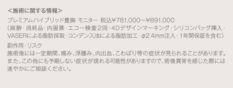 バストの内部をチェックする超音波検査です。術前は脂肪の注入量や挿入するバッグの大きさの目安、しこりなどの異常の確認を目的に実施します。術後は仕上がりのチェックのために行います。